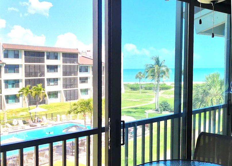 Located on Sanibel Island with all new furniture and great views of the Gulf Beach and the Swimming Pool below. Jacuzzi tub in the master bath, spacious living room, dining room, screened patio and a new full size front loading washer & dryer.